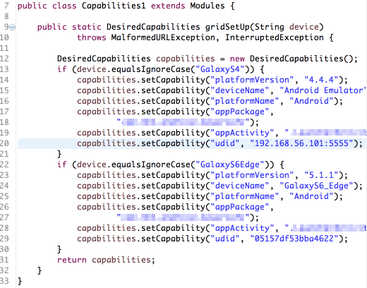 java: 단말기 개수에 맞게 capabilities 작성(udid, devicesName은 필수 입력)